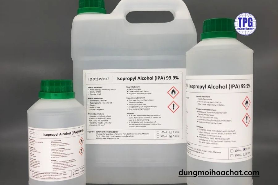 - Vật liệu chứa: Chỉ sử dụng can, thùng hoặc chai lọ bằng nhựa chuyên dụng hoặc kim loại không phản ứng với IPA. Tuyệt đối không dùng bao bì kém chất lượng hoặc dễ bị phân hủy bởi hóa chất.