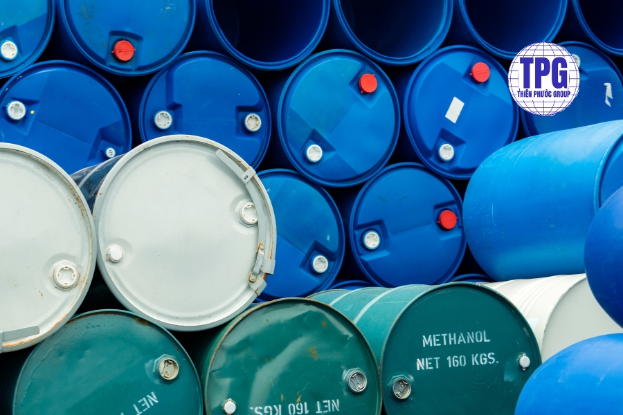 - Đóng gói an toàn – theo đúng tiêu chuẩn: Methanol được đóng trong can, phuy hoặc tank, có dán tem cảnh báo, phiếu an toàn SDS đi kèm.