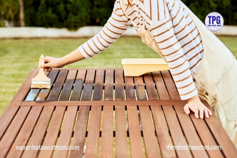 Ngoài ra, khi dùng cho các dòng sơn mài, sơn gỗ NC (Nitrocellulose) hay sơn lót chống thấm, xăng thơm cũng đóng vai trò giúp kiểm soát thời gian khô, tăng khả năng bám dính của lớp sơn vào bề mặt gỗ, đồng thời giảm thiểu hiện tượng bong tróc sau một thời gian sử dụng. Các xưởng sản xuất bàn ghế, tủ kệ, vách ngăn,... đặc biệt ưa chuộng dòng xăng thơm 136 vì độ bay hơi ổn định, ít để lại vết xước trắng trên gỗ.