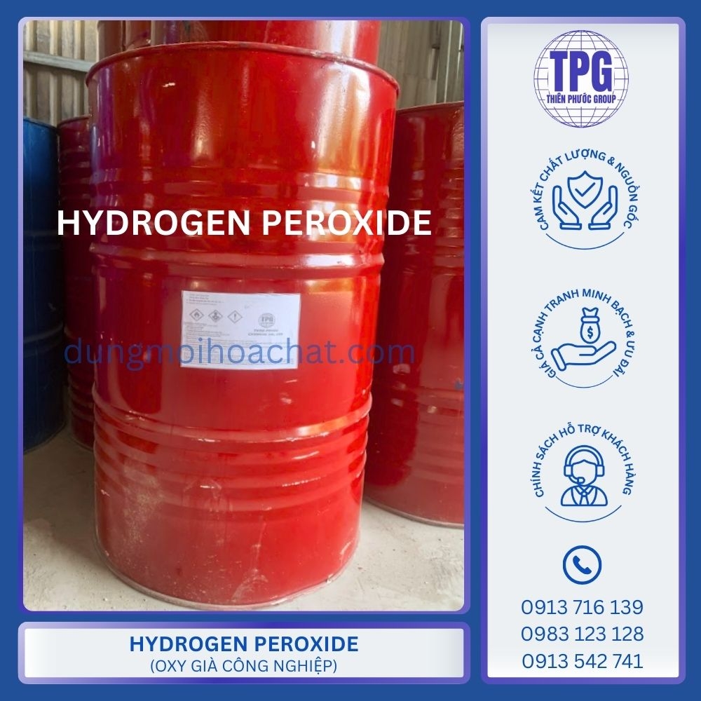 Thiên Phước Group: Nhà phân phối hóa chất công nghiệp, cung cấp H₂O₂ 50% chính hãng, có COA/MSDS, kho hàng tại TP.HCM, hỗ trợ giao hàng nhanh và tư vấn kỹ thuật phù hợp nhu cầu xử lý nước, dệt nhuộm, xi mạ hoặc công nghiệp.