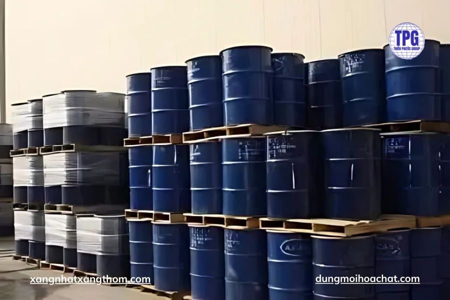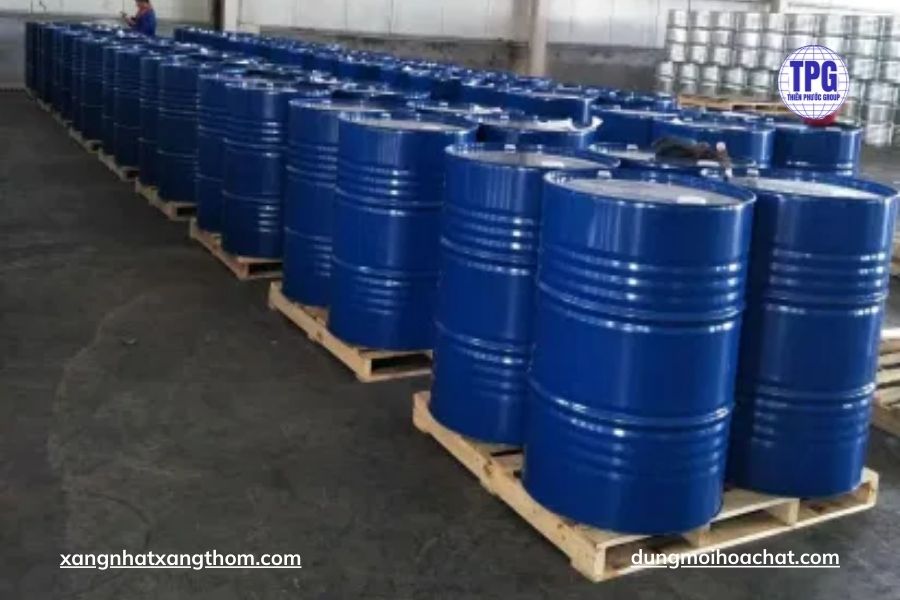Dung môi DMF được Thiên Phước phân phối theo quy cách đóng gói chuẩn: 190kg/phuy thép, phuy kín, niêm phong, đảm bảo an toàn khi vận chuyển và bảo quản lâu dài.