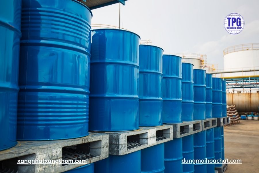 - Bao bì: Mỗi phuy thép được sơn màu xanh hoặc đen, có dập nổi mã số lô, ngày sản xuất và xuất xứ.