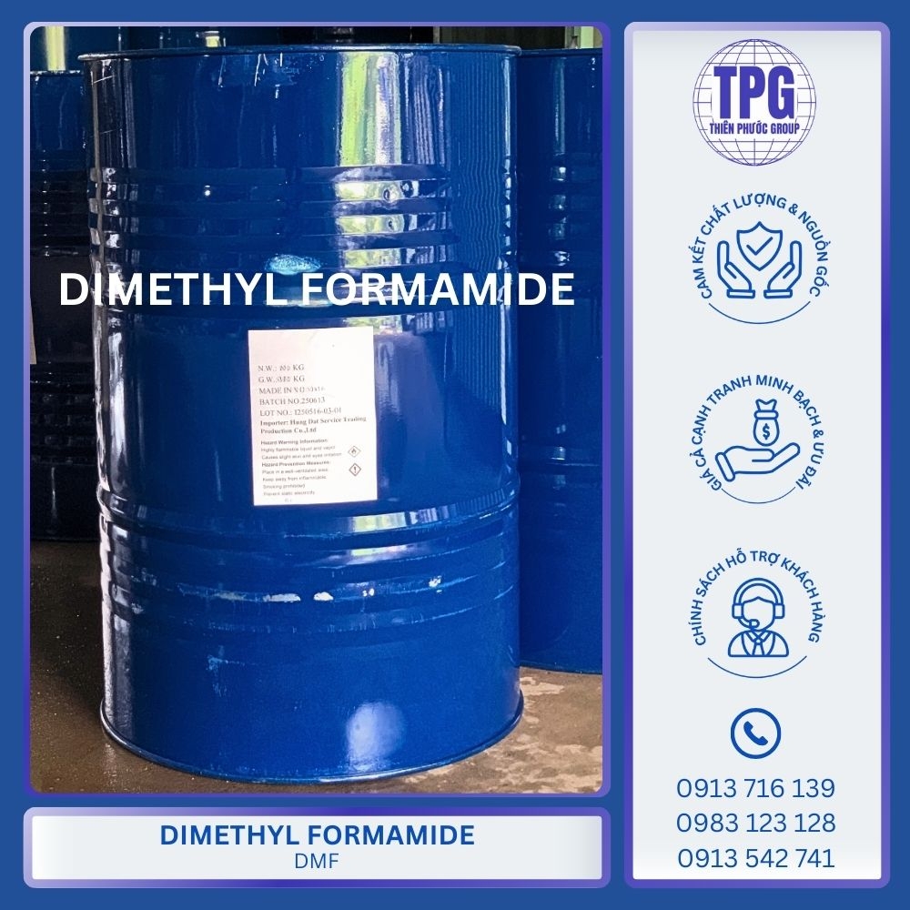 Dimethyl Formamide (DMF) là một dung môi hữu cơ quan trọng trong sản xuất công nghiệp, từ sơn, nhựa, dệt nhuộm đến hóa chất và dược phẩm. Bài viết này cung cấp cho bạn cái nhìn toàn diện về đặc điểm hóa học, tính năng, cách sử dụng an toàn và báo giá mới nhất của dung môi DMF C3H7NO. Đồng thời, bạn sẽ tìm thấy địa chỉ mua DMF nhập khẩu uy tín – chính hãng – giá cạnh tranh tại Thiên Phước Group, kèm theo chính sách hậu mãi và giao hàng chuyên nghiệp trên toàn quốc.