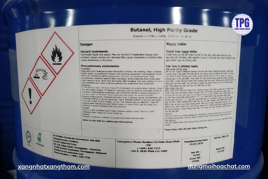 Là một hóa chất dễ cháy và có thể gây ảnh hưởng đến sức khỏe nếu tiếp xúc trực tiếp, N-Butanol cần được bảo quản và sử dụng theo đúng quy định an toàn để tránh rủi ro cho người và thiết bị.